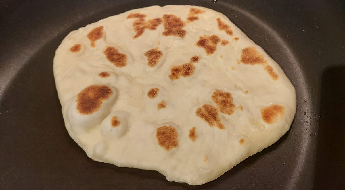Chauffer une grande poêle à feu fort, poser le naan et cuire pendant quelques minutes.