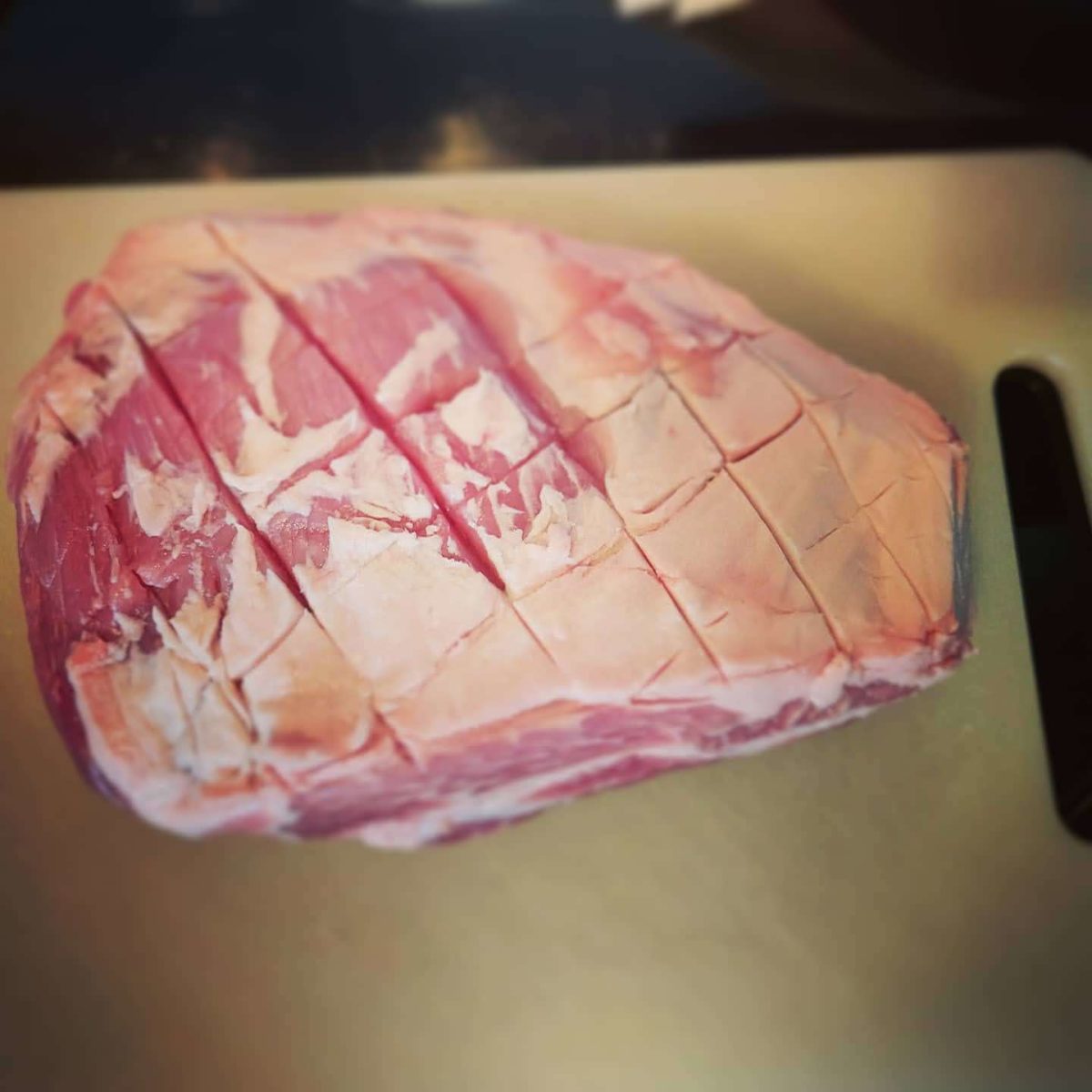 Vers 0800, on taille dedans. Il faut enlever la couenne si elle est présente et nettoyer les éventuels petit bouts qui dépassent, gras pas top appétissant et membranes.